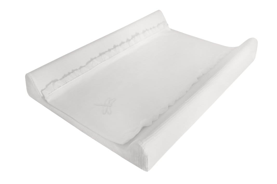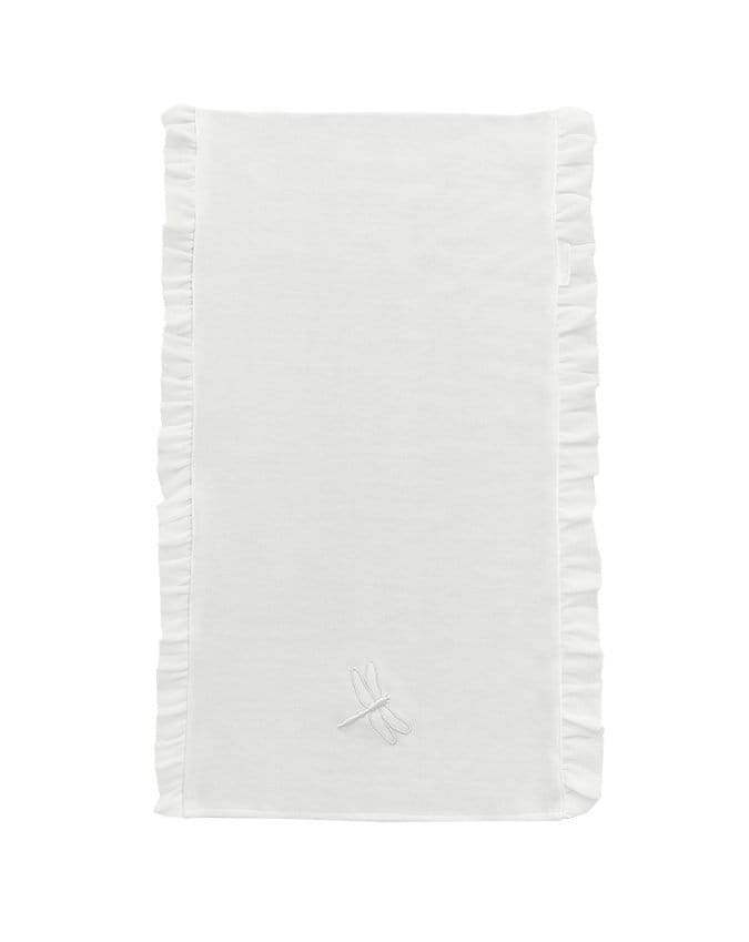 Nakładka na przewijak, która chroni go przed zmoczeniem. Wykonana z weluru w kolorze ecru, ozdobiona falbanką transparentną falbanką oraz haftem ważki. Pasuje do wszystkich przewijaków Caramella.