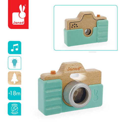 Aparat fotograficzny drewniany z dźwiękiem i lampą błyskową 18 m+, Janod