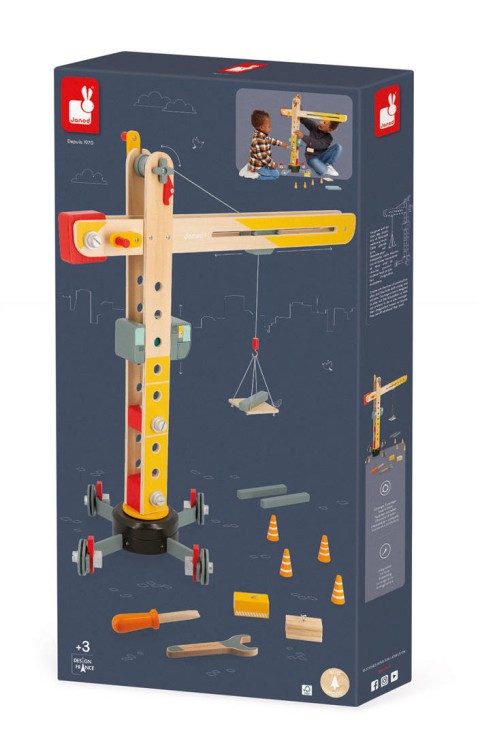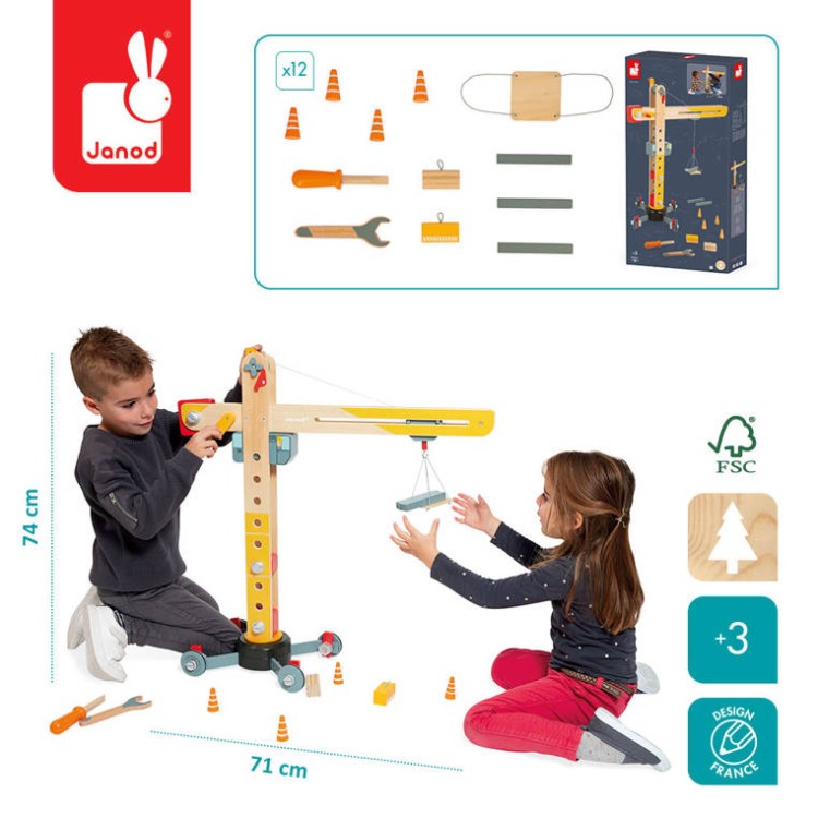 Duży drewniany dźwig do składania z narzędziami 3+, Janod