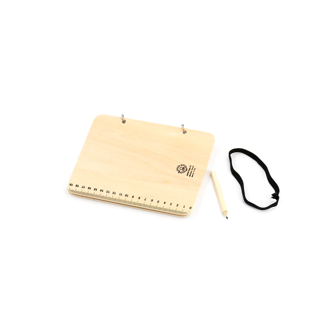 Czasopismo jest wykonane z drewna i zawiera 12 czystych stron. Z tyłu linijka do mierzenia wysokości roślin.
