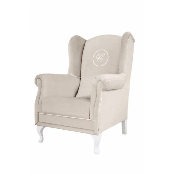 Duży, bardzo wygodny fotel typu "uszak" pokryty wysokiej jakości tkaniną zmywalną w kolorze chłodnego, kamienistego beżu, wpadającego w szarość. Fotel ozdobiony jest szykowną białą kedrą oraz ekskluzywnym emblematem z literką "C" w kolorze jasnoszarym. Ze względu na wysokie oparcie, "uszy" pod głowę oraz podłokietniki doceni go każda mama karmiąca. Fotel pasuje do każdego wnętrza- pokoju dziecięcego, salonu, sypialni i nie tylko.