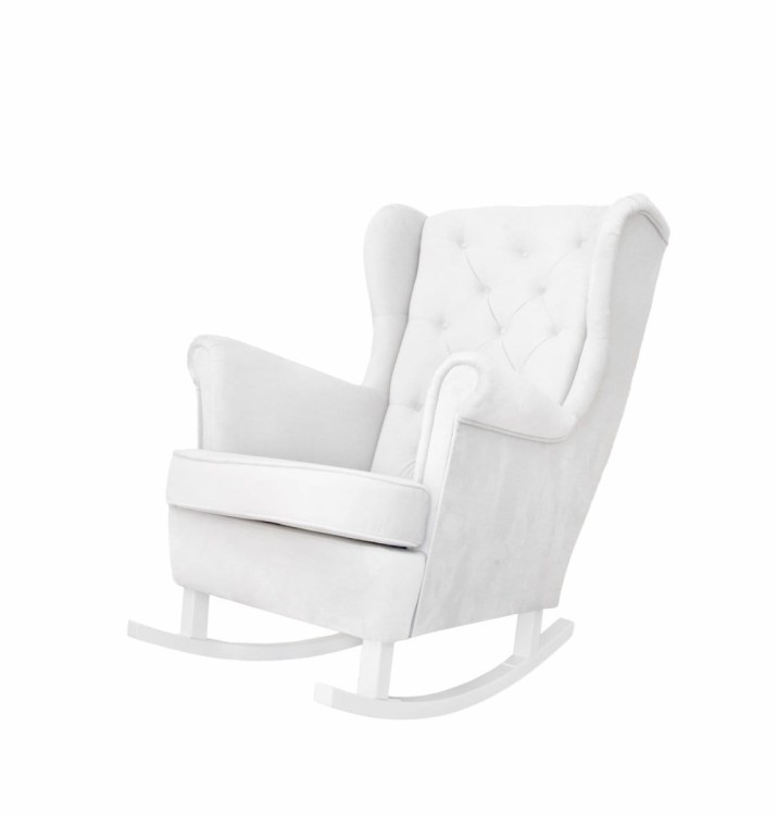 Duży, bardzo wygodny fotel bujany typu "uszak". Idealny dla karmiącej mamy ze względu na wysokie oparcie, podłokietniki, "uszy" pod głowę oraz płozy, które pozwalają się mamie bujać i tym samym uspokajać maluszka oraz pozwalać mu szybciej zasnąć. Dodatkową zaletą fotela jest obicie z wysokiej jakości tkaniny zmywanej. Fotel pasuje do każdego wnętrza- pokoju dziecięcego, salonu, sypialni i nie tylko.