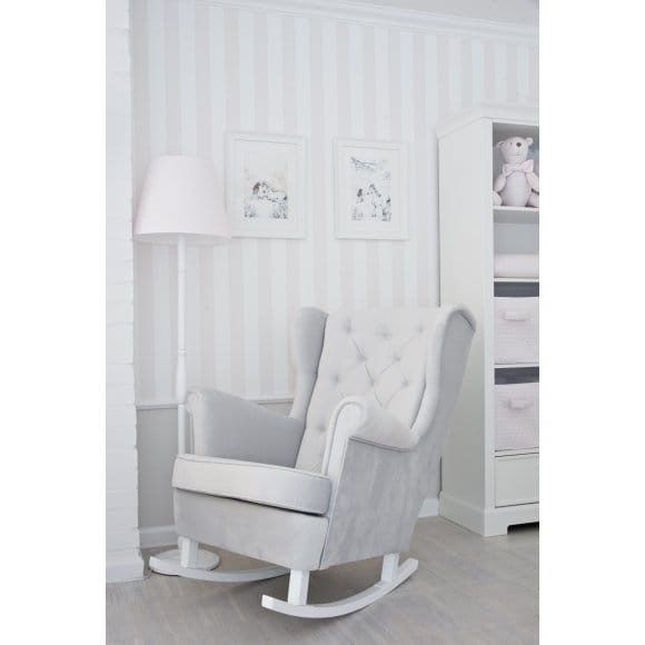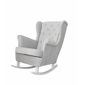Duży, bardzo wygodny fotel bujany typu "uszak". Idealny dla karmiącej mamy ze względu na wysokie oparcie, podłokietniki, "uszy" pod głowę oraz płozy, które pozwalają się mamie bujać i tym samym uspokajać maluszka oraz pozwalać mu szybciej zasnąć. Dodatkową zaletą fotela jest obicie z wysokiej jakości tkaniny zmywanej. Fotel pasuje do każdego wnętrza- pokoju dziecięcego, salonu, sypialni i nie tylko.