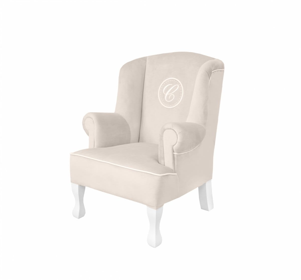 Elegancki, stylizowany fotelik w wersji mini. Pokryty wysokiej jakości tkaniną zmywalną w kolorze ciepłego, piaskowego odcieniu beżu i ozdobiony dekoracyjnym eleganckim firmowym emblematem z literką "C". Piękna, klasyczna forma w wersji mini, wzbogaci pokój każdego dziecka.