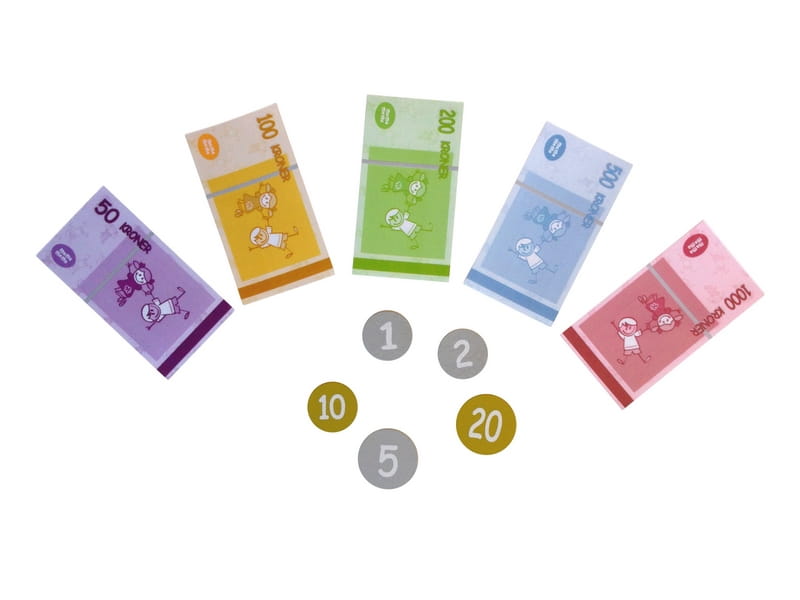 klucze do wprowadzania kwot oraz szuflada na duńskie banknoty i monety, które są dołączone do zestawu.