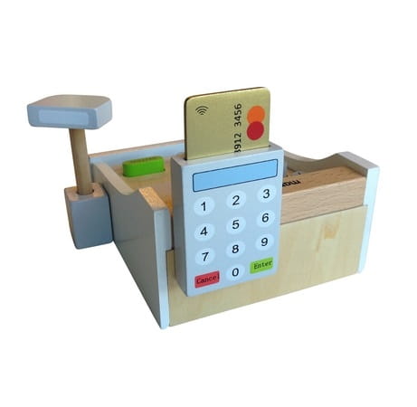 Jeśli grasz w sklep, niezbędna jest kasa fiskalna. Dzięki temu zabawa jest o wiele przyjemniejsza, a dzieci uczą się również matematyki.