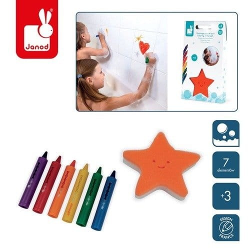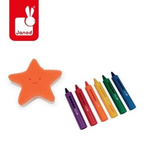 Kredki do kąpieli 6 kolorów z gąbką 3+, Janod