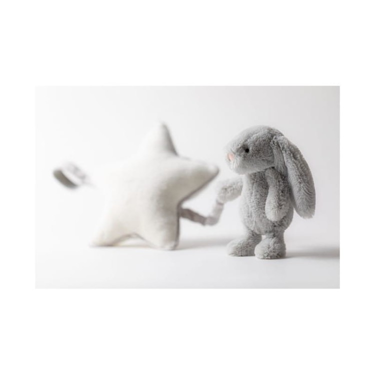 Króliczek z Gwiazdką i Pozytywką Srebrny 30 cm, JellyCat