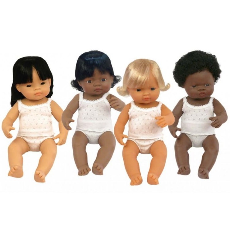 Urocze lalki hiszpańskiej marki Miniland reprezentują dzieci z czterech stron świata. Starannie wykonana lalka o wysokości 38 cm będzie idealnym prezentem dla małej dziewczynki lub chłopca.