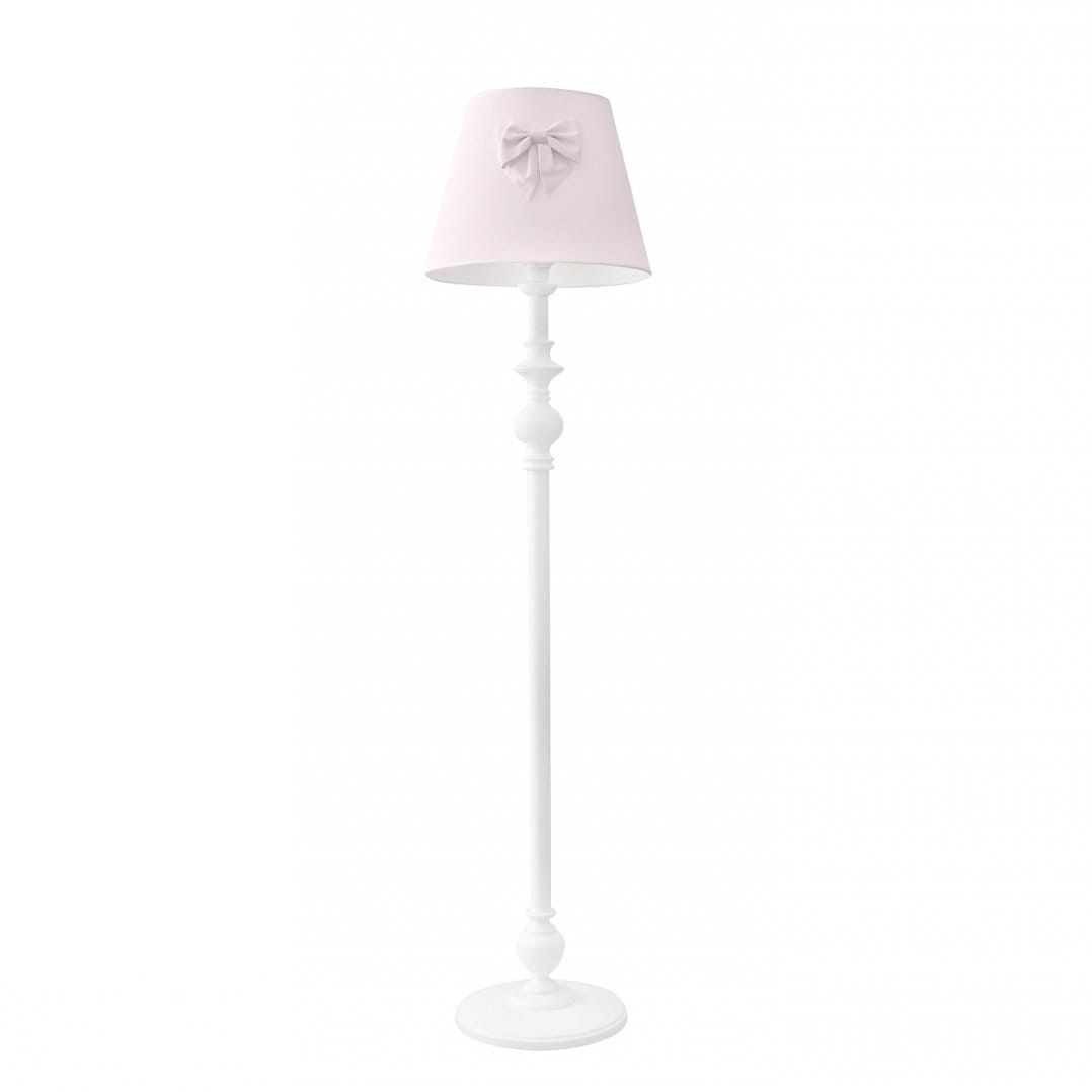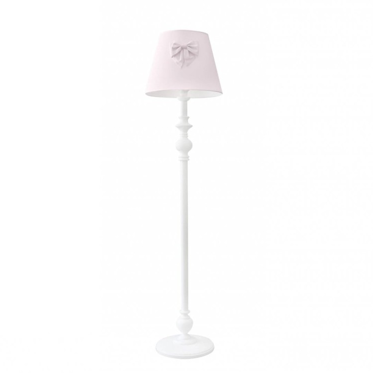 Typowo dziewczęce wzornictwo – klosz w odcieniu pudrowego różu z dekoracyjną kokardką. Duża lampa pokojowa z elegancką, drewnianą nogą z dekorem wzbogaci każde wnętrze pięknym, ciepłym światłem. Idealne dopełnienie pozostałych lamp z kolekcji Pudrowej.