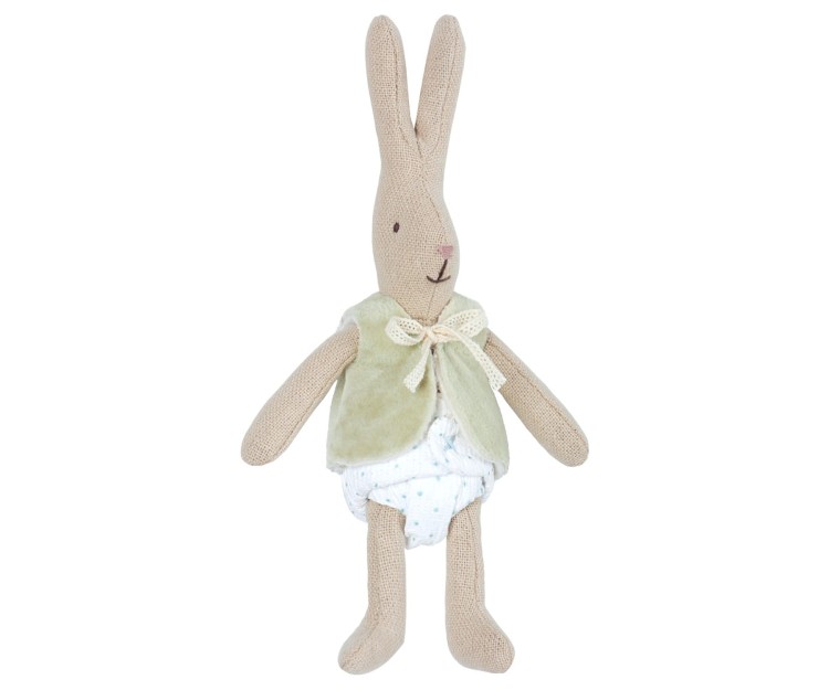 Uroczy Micro króliczek z długimi uszkami duńskiej marki MAILEG. Króliczka można przebierać. W kolekcji dostępne są także akcesoria, mebelki i ubranka dla króliczka i całej jego rodziny. Zabawka wykonana jest z ogromną starannością i dbałością o każdy detal. Świetnie sprawdzi się jako pomysł na prezent.