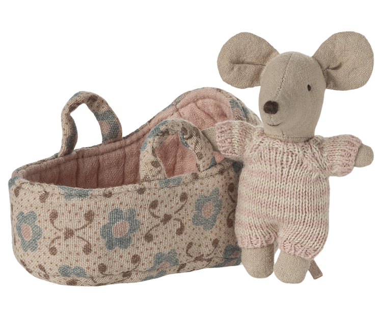 Maileg - Myszka niemowlęca w łóżeczku - Róża