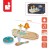 Drewniany ministolik muzyczny z serii Pure francuskiej marki JANOD to idealny zestaw pierwszych zabawek muzycznych dla dziecka, który pomaga rozwijać słuch, poczucie rytmu i zdolności muzyczne, a przy tym wielofunkcyjna zabawka, która nieprędko się znudzi. Na zaokrąglonym podeście na nóżkach znajduje się m.in. dzwoneczek w kształcie stokrotki, perkusja złożona z dwóch muchomorów, wyjmowany bębenek z grafiką stawu z rybkami, tarka oraz wyjmowana drewniana pałeczka – ważka z filcowymi skrzydłami. Zabawka wspiera rozwój motoryki i wyobraźni, koncentracji i koordynacji ruchowej. Ma piękną pastelową kolorystykę.