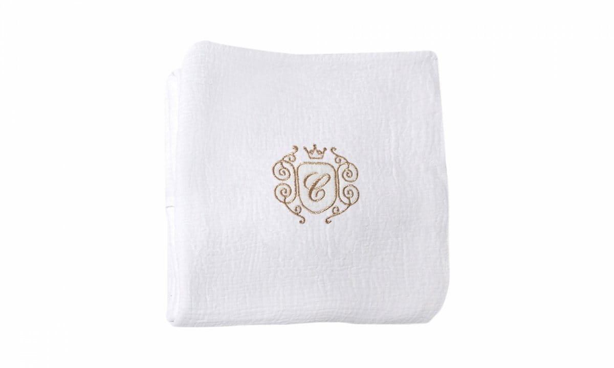 Ekskluzywny otulacz wykonany z wysokiej jakości bawełny w kolorze białym. Ozdobiony eleganckim złotym emblematem firmowym. Otulacze doskonale sprawdzą się jako prześcieradło, kocyk, czy po prostu ochrona delikatniej skóry niemowlęcia. Z powodzeniem można stosować je również jako osłonę do wózka przed słońcem (ochrona przed promieniowaniem UVA/UVB), wiatrem i owadami. Idealny na prezent na chrzest - istnieje możliwość wyhaftowania imienia dziecka oraz daty uroczystości. Produkt pakowany jest w eleganckie pudełko firmowe.