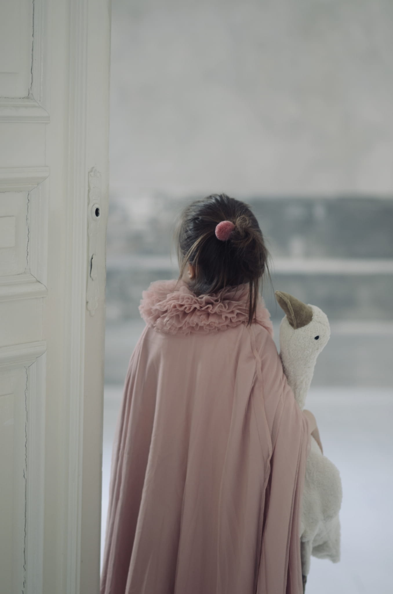 Kołnierz jest wykonany z 16 warstw tiulu, dzięki czemu jest obszerny i wyprostowany, a peleryna zapinana jest pod szyją na rzep.
