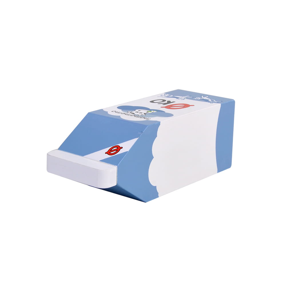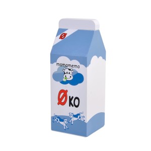 Drewniana zabawka imitująca pudełko z mlekiem jako uzupełnienie kuchennych akcesoriów do zabawy dla małego kucharza, a także podczas zabawy w karmienie lalek, misiów czy ulubionej przytulanki zwierzątka.