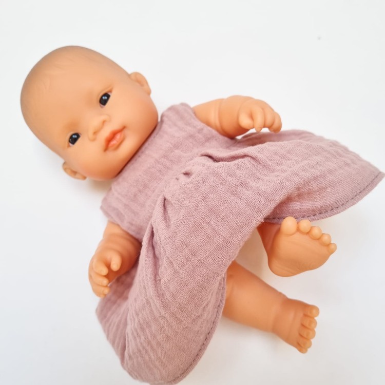 Sukienka dla lalki Miniland Baby z różowego muślinu ( 21 cm )