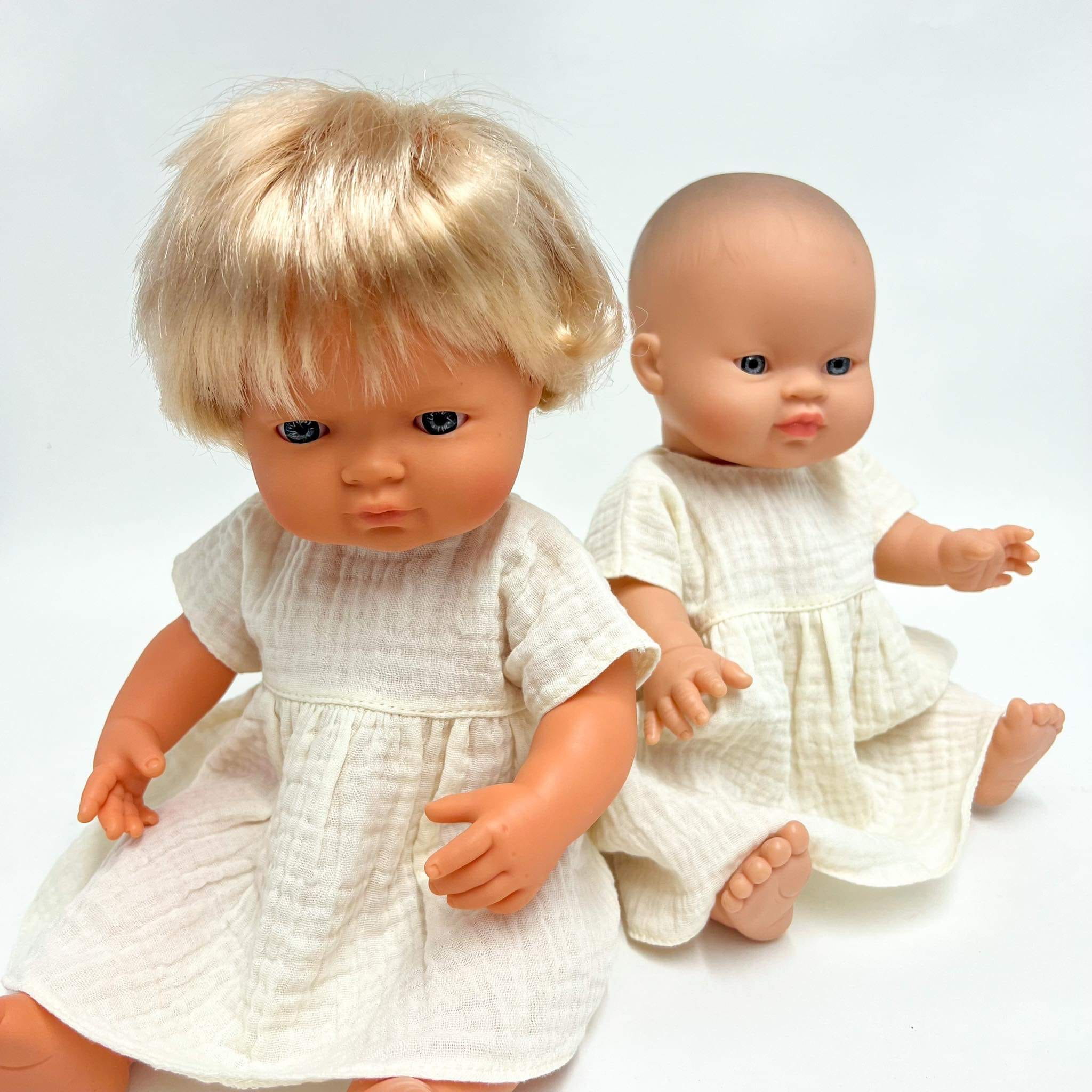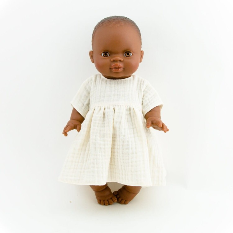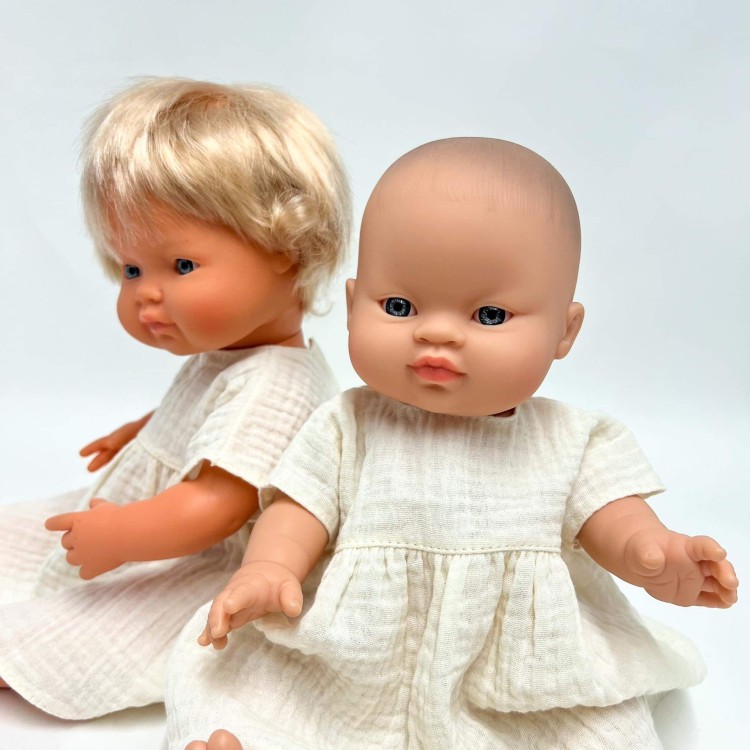 Sukienka z muślinu dla Miniland 38 cm i Paola Reina, waniliowa