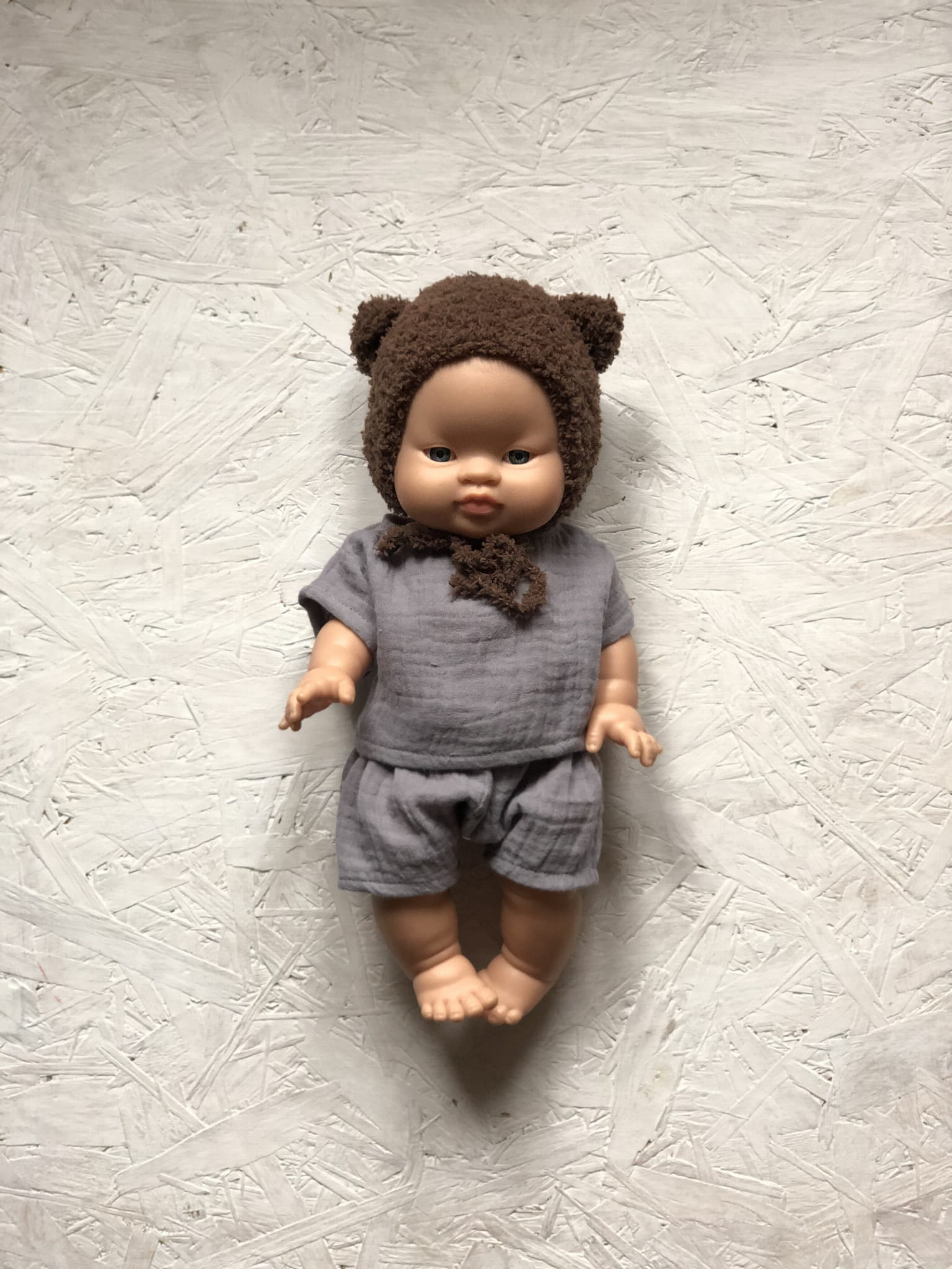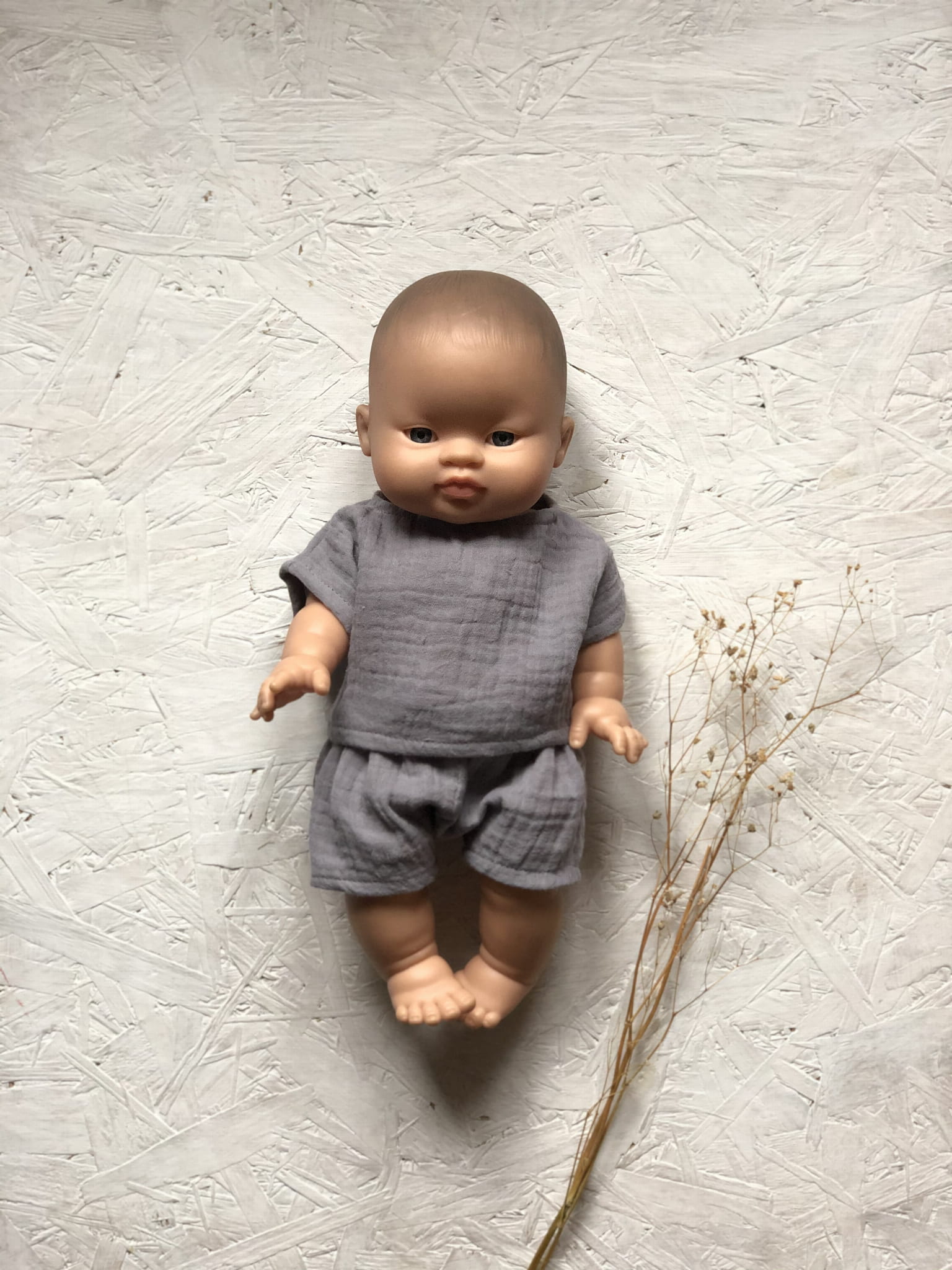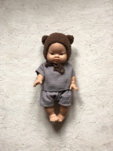 Muślinowy komplet dla lalki chłopca.