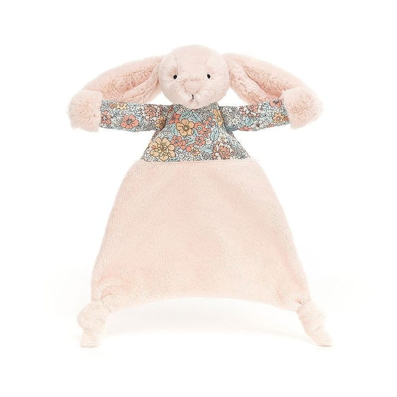 Każdy potrzebuje królika do przytulania! Pocieszyciel Blossom Bea Beige Bunny jest niezwykle neutralny i nakrapiany kwiatami. Nasz królik ma top w kwiaty, śliczny beżowy brzuszek i gumiaste, sękate stopy. Idealny do drzemki