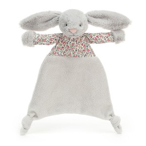 Weź łapę i zaprzyjaźnij się! Blossom Silver Bunny Comforter jest pięknie neutralny i mętnie miękki. Ubrany w klasyczną bawełnianą bluzkę w czerwone, różowe, zielone i kremowe kwiaty, ta koka z bobble foot ma łaskotliwy brzuszek i sękate stopy, co zapewnia kojące gryzienie.