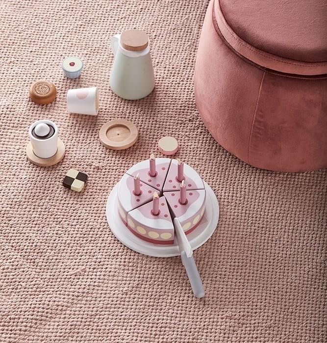 Drewniany tort urodzinowy jest świetną propozycją dla dzieci w wieku powyżej 3 lat, które lubią przyjmować gości. Zestaw umożliwi dziecku świętowanie urodzin każdego dnia! Pięknie ozdobiony i kolorowy o apetycznym wyglądzie będzie niewątpliwie ozdobą stołu. Posiada talerzyk na którym ułożone jest pięć kawałków tortu złączone ze sobą rzepami. Nieodłącznym elementem tortu są świeczki bez których urodziny nie mogłyby się odbyć :) Zabawa zestawem ćwiczy również zdolności manualne, doskonali dziecka koncentrację oraz wspomaga koordynowanie ruchów.
