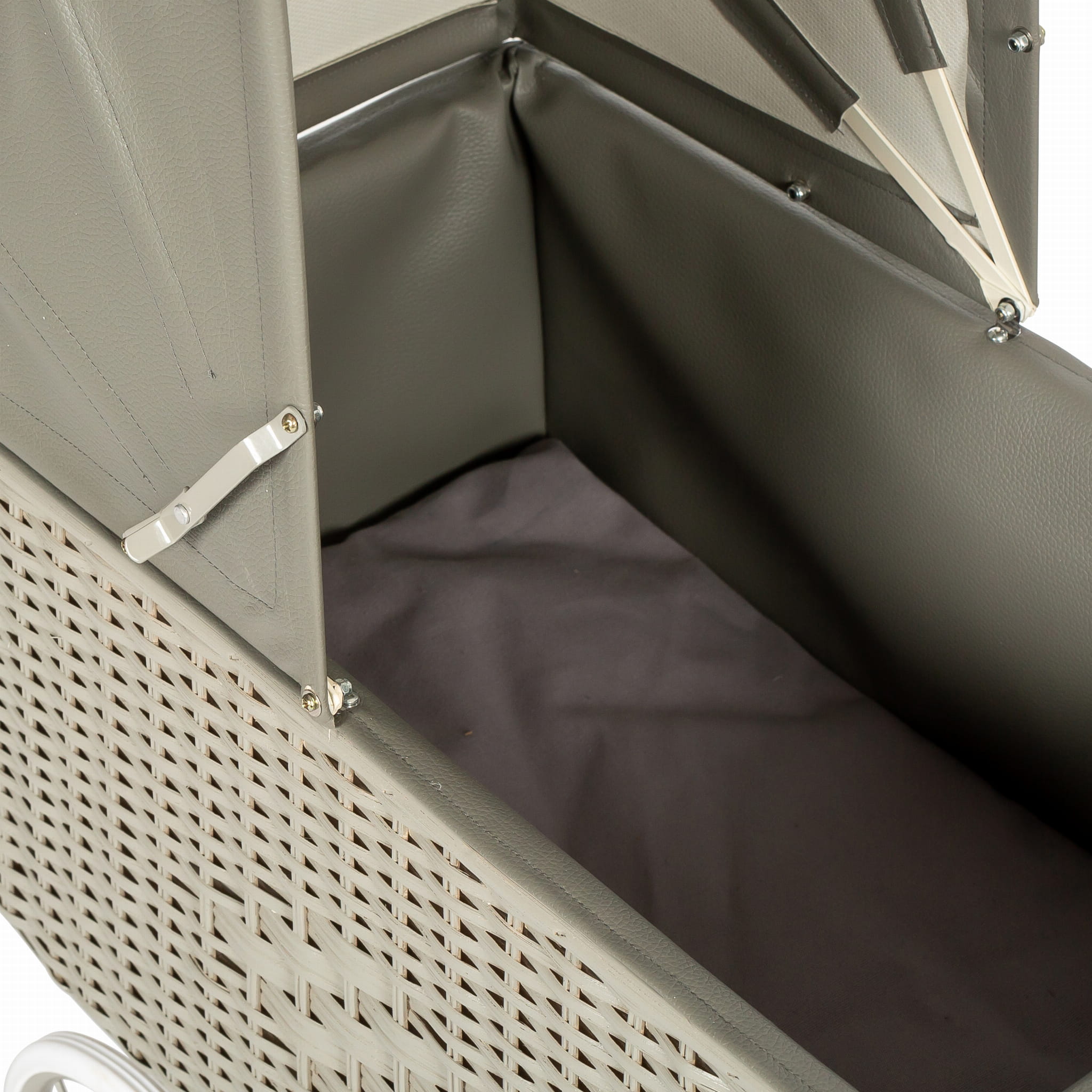 Zaproś znajomych do domu. Razem możecie schować lalki i zabrać je na spacer jednym z tych romantycznych wózków dla lalek. Wózki dla lalek są wyposażone w metalową ramę i duże, obszerne łóżeczko z rattanu, wyłożone PU. Piękny kaptur z PU można oczywiście złożyć, aby lalka mogła patrzeć na świat. Gumowe opony na kołach zapewniają ich cichą pracę. Czarujący wózek, który przenosi nas w przeszłość.